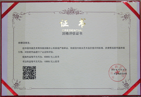 书画润格认证证书