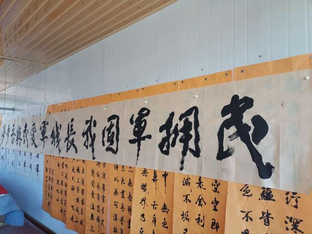 在“八一建军节”来临之际,中国书画家杂志社副社长,中国榜书专业委员会主席,著名书法家李俊峰“送文化”走进军营,创作巨幅榜书长卷。